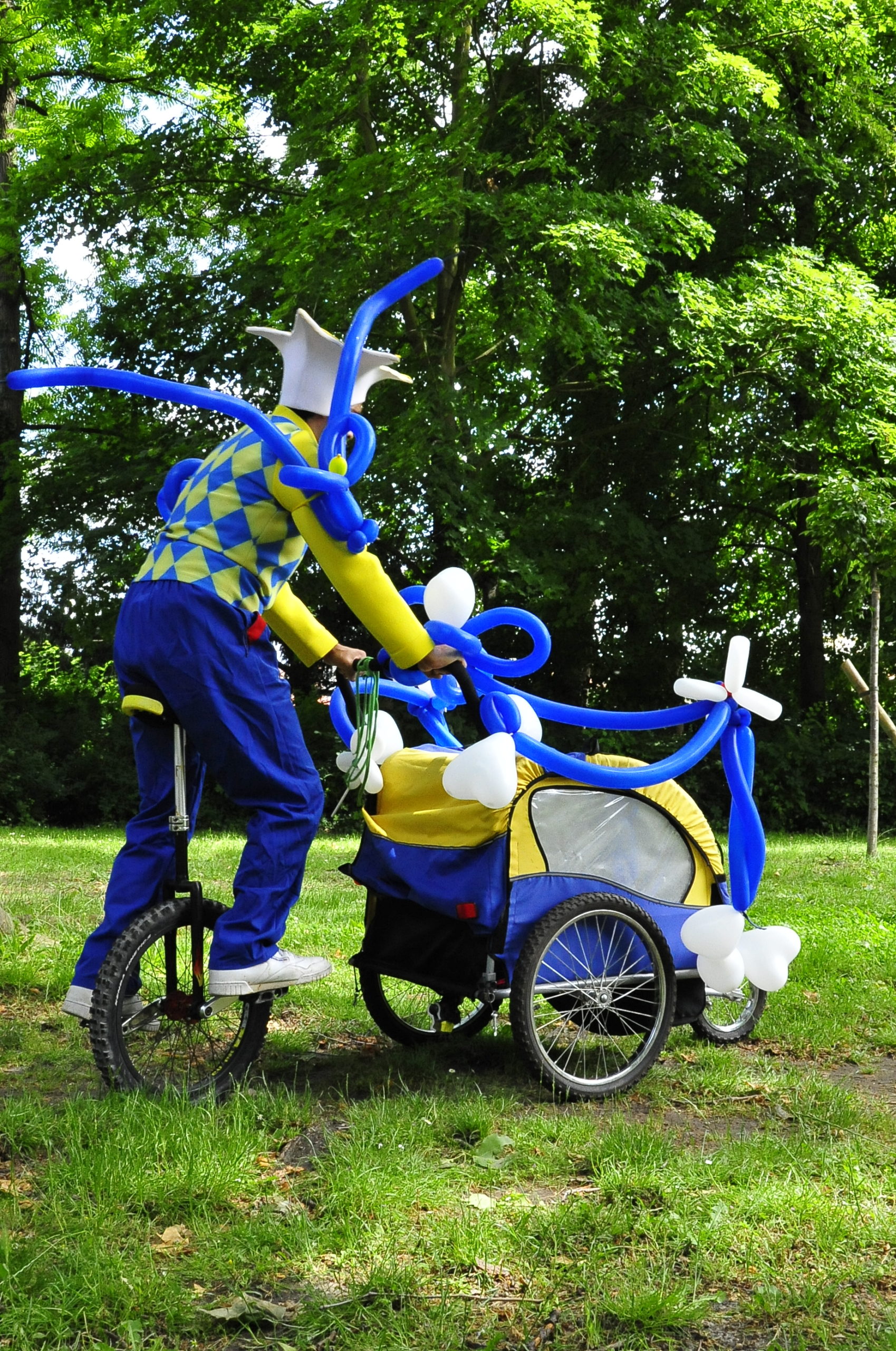 parade cirque et musique Arlequin en bleu et jaune (79)